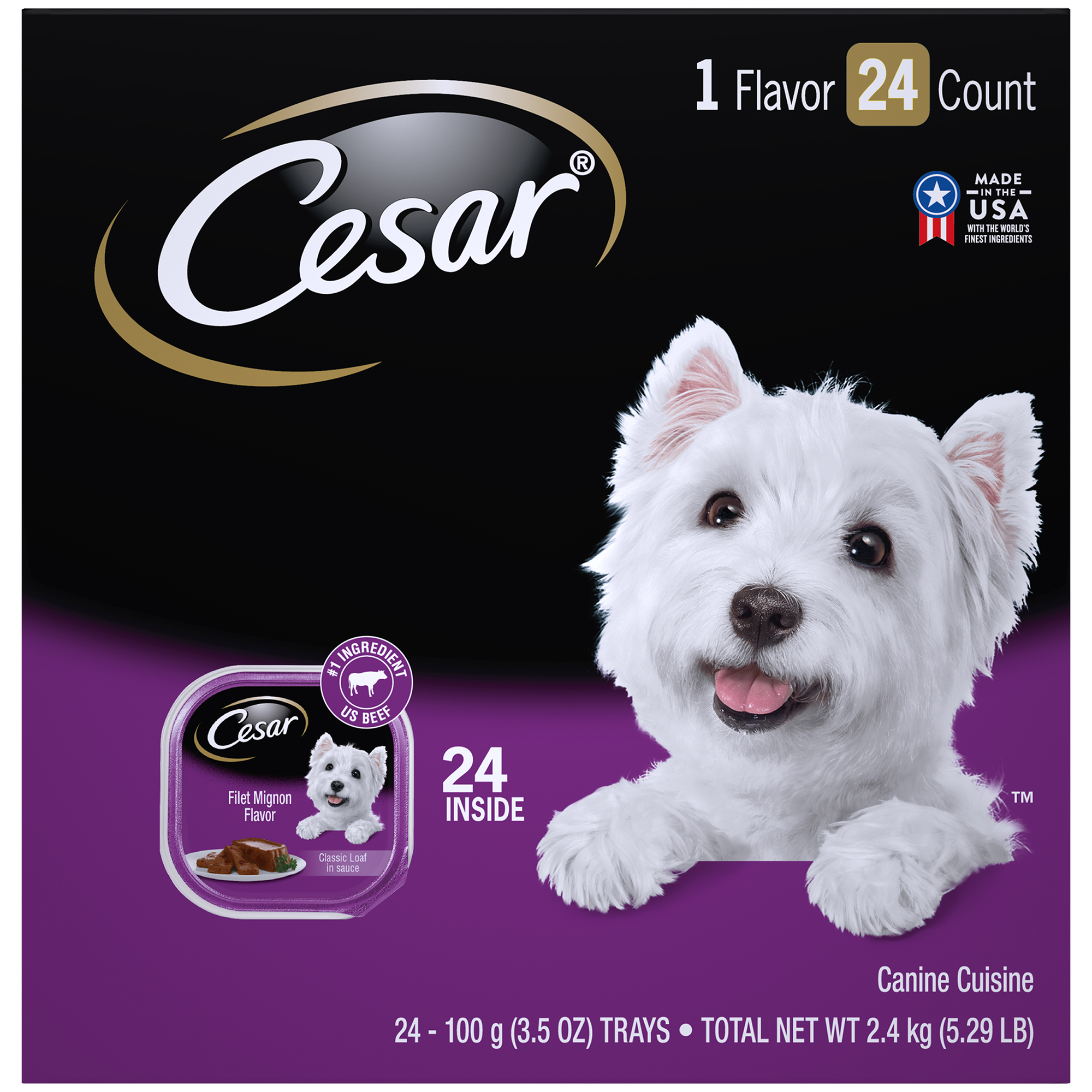 SKU: 24-pack-cesar-wet-dog-food-classic-loaf-in-sauce-filet-mignon-flavor-multipack-3-5-oz-easy-peel-trays Category: